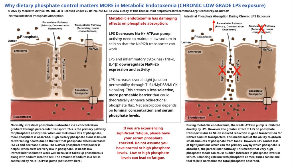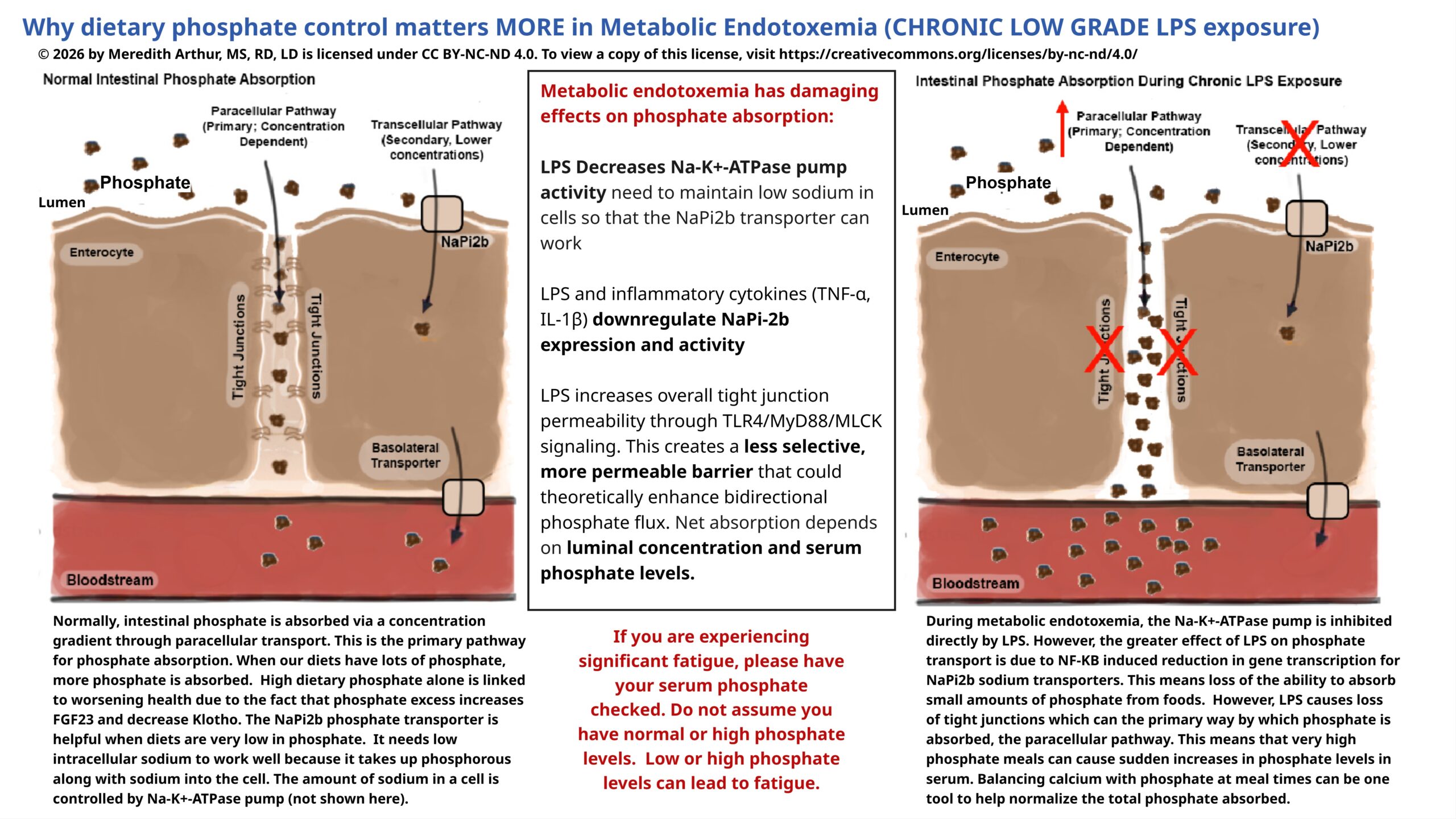 Posted on April 15, 2026April 16, 2026 by Meredith ArthurWhy dietary phosphate control matters MORE in Metabolic Endotoxemia (CHRONIC LOW GRADE LPS exposure) © 2026 by Meredith Arthur, MS, RD, LD is licensed under CC BY-NC-ND 4.0. To view a copy of this license, visit https://creativecommons.org/licenses/by-nc-nd/4.0/